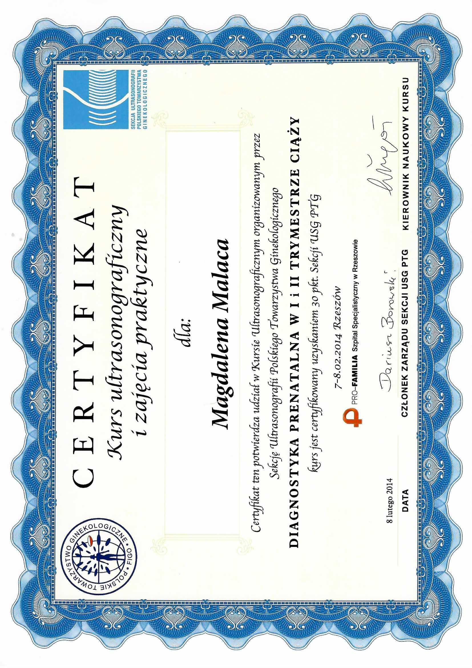 Członek Polskiego Towarzystwa Ginekologów i Położników oraz International Society of Ultrasound in Obstetrics and Gynecology,
